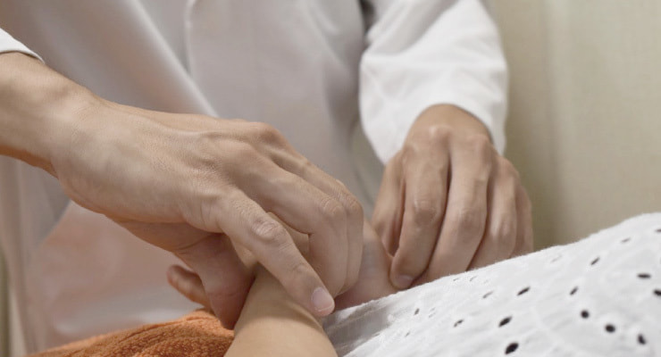 脈、舌、お腹、背中、手足のツボを実際に触れて確認していきます。(ワンピースでのご来院はご遠慮下さい)